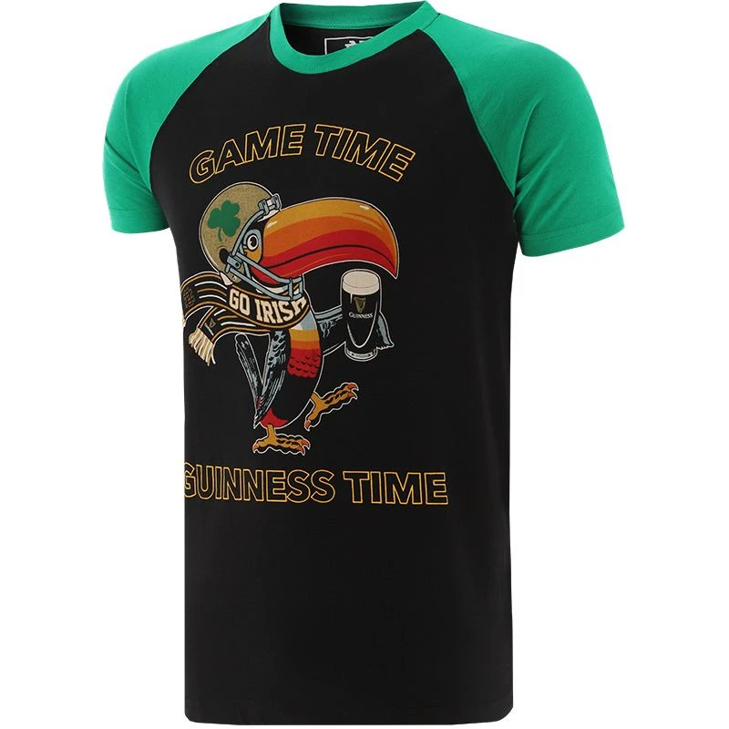 Cheer on the Fighting Irish with the Guinness Notre Dame T-Shirt, featuring the Guinness toucan with a Fight Irish football helmet printed on the front.